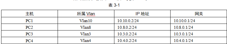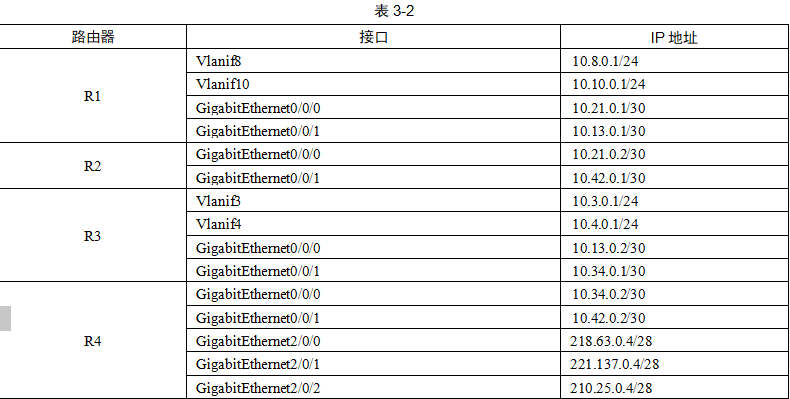 PC 机的地址信息见表 3-1,路由器部分接口地址信息见表 3-2。