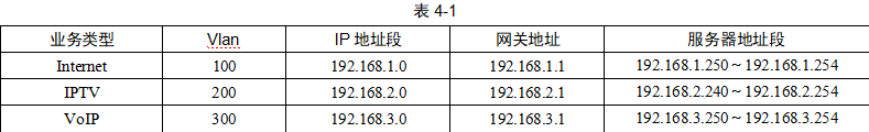 公司管理员对各业务使用的 VLAN 所作规划见表 4-1。
