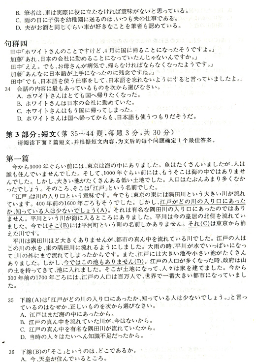 - 2009年职称日语考试C级真题(三)2011-07-28