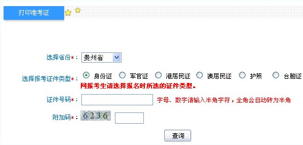 贵州省2013年初级会计职称无纸化考试准考证打印入口