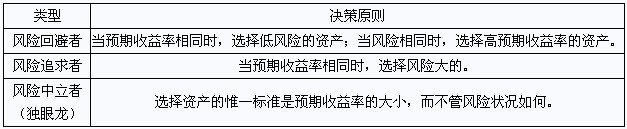 根据人们的效用函数不同,可以按照其对风险的偏好分为风险回避者、风险追求者和风险中立者。