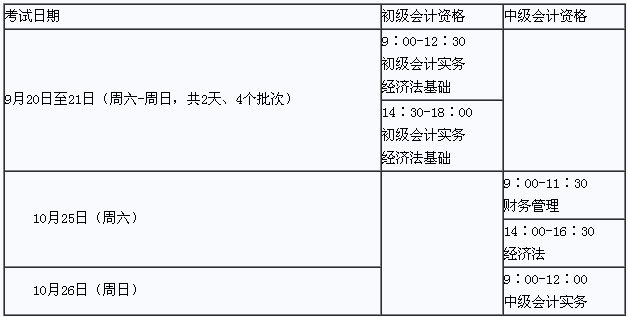 初级会计资格考试于9月20日-21日举行。