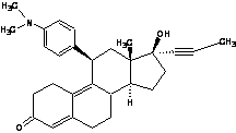 以炔诺酮为先导化合物经结构修饰后得到的新型化合物。C-11β-二甲氨基苯基的引入是导致由炔诺酮这一孕激素转变为抗孕激素的主要原因,而丙炔基的引入除使其保持口服活性外,还因丙炔基比乙炔基更加稳定。△9(10)的引入使整个甾体母核共轭性增加。本品有较长的消除半衰期 ( 平均为 34 小时 ), 血药峰值与剂量无明显关系。具有抗孕激素和抗皮质激素的作用。妊娠早期使用可诱发流产,抗早孕时与前列腺素类药合用。