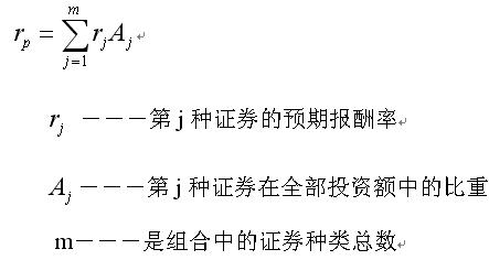 1、证券组合的预期报酬率???组成资产组合的各种资产的预期收益率的加权平均数,其权数等于各种资产在整个组合中所占的价值比例