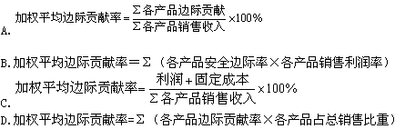 15.下列关于多种产品加权平均边际贡献率的计算公式中,错误的是( )。