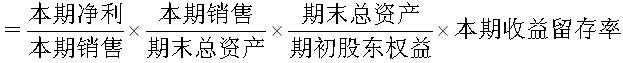 =销售净利率×总资产周转率×期初权益期末总资产乘数×收益留存率