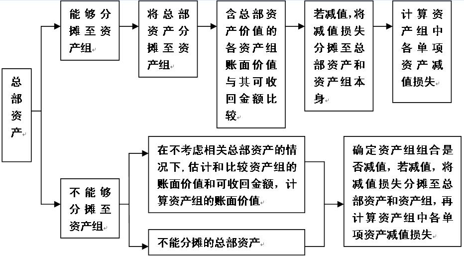 (一)对于相关总部资产能够按照合理和一致的基础分摊至该资产组的部分,应当将该部分总部资产的账面价值分摊至该资产组,再据以比较该资产组的账面价值(包括已分摊的总部资产的账面价值部分)和可收回金额,并按照前述有关资产组的减值损失处理顺序和方法处理。