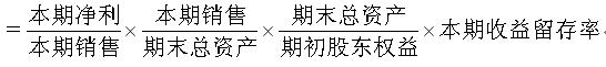 =销售净利率×总资产周转率×期初权益期末总资产乘数×收益留存率