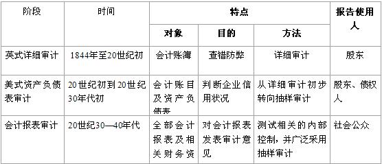 (三)注册会计师审计从形成到发展经历了详细审计阶段、资产负债表审计阶段、会计报表审计阶段。