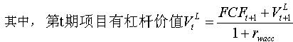 第t期投资借债能力=债务与企业价值的比率×第t期项目有杠杆持续价值