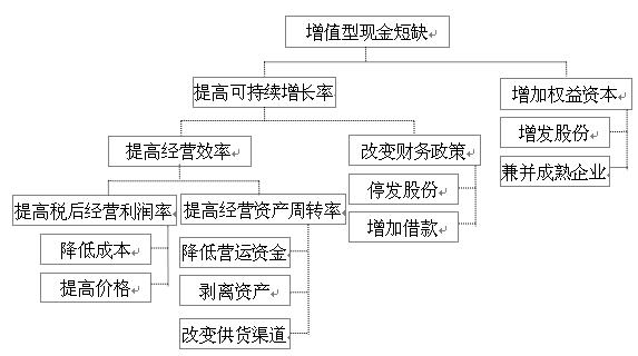【要点提示】表明企业盈利能力强,此时要提高公司价值,需要解决资金问题。一是通过自身效率的提高,即减少资金占用,加快资金循环与周转,提高可持续增长率,从而降低销售增长率与可持续增长率之间的差异,减缓资金紧张状况;二是直接增加资金,如减少股利,增加负债融资和权益融资,还可以兼并现金流比较充裕的企业缓解资金压力。