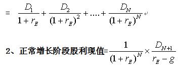 股票价值=高速增长阶段股利现值+正常增长阶段股利现值