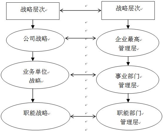 企业战略可以划分为三个层次:公司战略、业务单位(竞争)战略和职能战略。一般而言,在竞争领域的三个层面上,公司战略指导和影响业务战略,业务战略则统领和整合职能战略。
