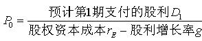若预期的股利是以恒定比率增长的,并永久持有,此时的股票模型称为不变股利增长率模型,在此模型下股票价值