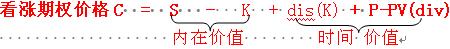 欧式看跌期权价格P=执行价格的现值PV(K)- 股票价格S +看涨期权价格C+ PV(div)