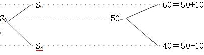 【例题】假设ABC公司的股票现在的市价为50元。假设标的股票不支付股利,有1股以该股票为标的资产的看涨期权,执行价格为50元。到期时间是6个月。6个月后股价有两种可能:上升10元,或者下降10元。无风险利率为每年12%。