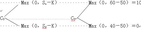 股价上行时:Cu =Δ×Su +B×(1+ rf) (1)