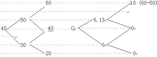 0时点期权价值C0=投资组合成本=0.3065×40-8.67=3.59(元)