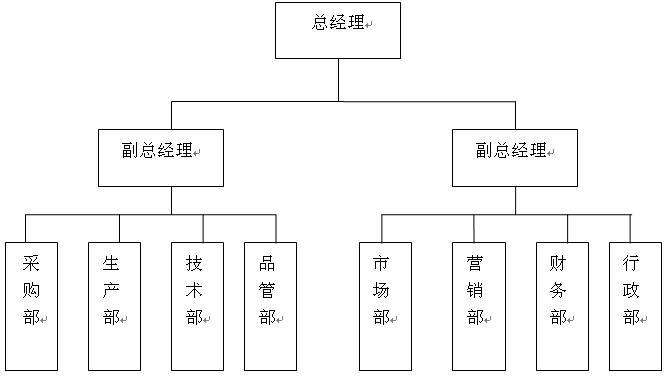 组织结构图显示了企业所有不同部分之间的关系。在一个较为详细的层级,组织结构图显示了不同级别的员工之间的关系,即企业内部的报告路线。组织结构类型是执行策略的特殊工具。下图即为一个较简单的组织结构图: