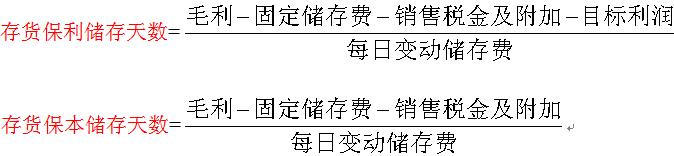 利润=毛利-固定储存费-销售税金及附加-每日变动储存费×储存天数
