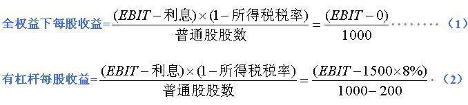 两种资本结构下每股收益相等时的EBIT计算如下: