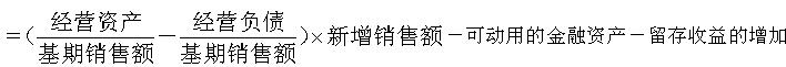 =(基期经营资产-基期经营负债)×销售增长率-可动用的金融资产-留存收益的增加