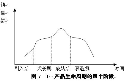 产品的生命周期理论假设产品都要经过引入阶段、成长阶段、成熟阶段和衰退阶段(见图7―1)。这些阶段的划分,以产品销售额增长曲线的拐点为标志。在引入期,由于买主的迟疑,增长平缓;一旦产品被证明是成功的,买主会大量涌入,开始进入成长期,销售额快速增长;当购买力与市场供应基本平衡后,增长放慢,进入成熟期;当新的代用品出现以后,产品逐步衰退,直至完全退出市场。