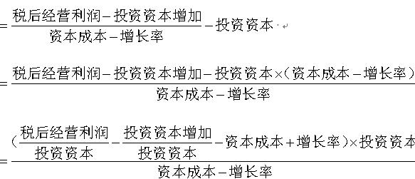 =税后经营利润-投资资本增加