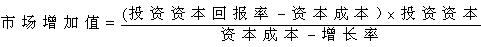 这里的企业的市场增加值与经济增加值(即经济利润)有联系。经济增加值是分年计量的,而市场增加值是预期各年经济增加值的现值。