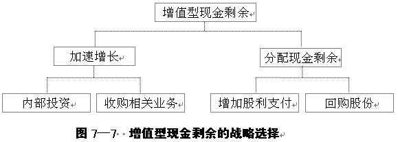 (1)由于企业可以创造价值,加速增长可以增加股东财富,因此首选的战略是利用剩余现金加速增长。加速增长的途径包括:①内部投资。扩大产销规模,增加生产线,建立大宗分销渠道等。②收购相关业务。收购与该项业务相关的业务,迅速扩大规模。不过,经过几次购并浪潮的盲目乐观之后,逐渐积累的证据表明,购买增长并没有给股东带来多少好处。购并所支付大笔的溢价,使买主得到的只是中等或较差的投资。