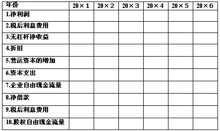 4、预测T公司的自由现金流量,填写表10-12。 $lesson$