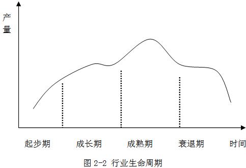 行业的生命发展周期主要包括四个发展阶段:幼稚期,成长期,成熟期,衰退期(见图2-2)。