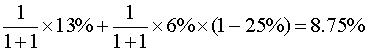 假设企业根据目标债务比率来为新项目筹资,新项目的债务筹资和股权筹资额相等。即债务与股权比率为1.预期借款税前资本成本为6%。