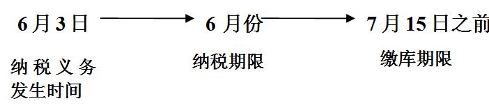 ②纳税期限:每隔固定时间汇总一次纳税义务的时间。纳税人的具体纳税期限,由主管税务机关根据纳税人应纳税额的大小分别核定;不能按照固定期限纳税的,可以按次纳税;