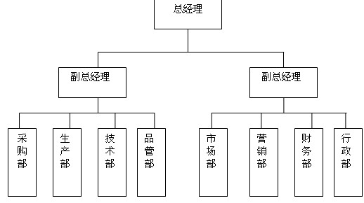 组织结构图显示了企业所有不同部分之间的关系。下图即为一个较简单的组织结构图: