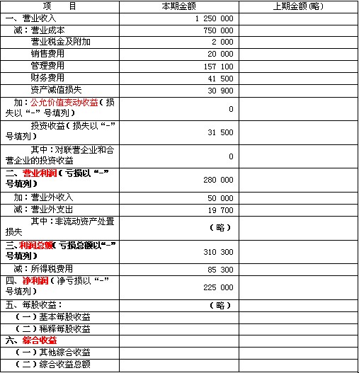 (一)利润表的格式