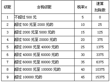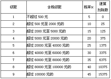 应纳税所得额501元,应纳税额=500×5%+1×10%=25.1(元),税后收入=475.9(元)