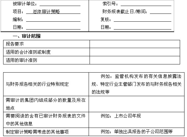 附录8-1 总体审计策略参考格式