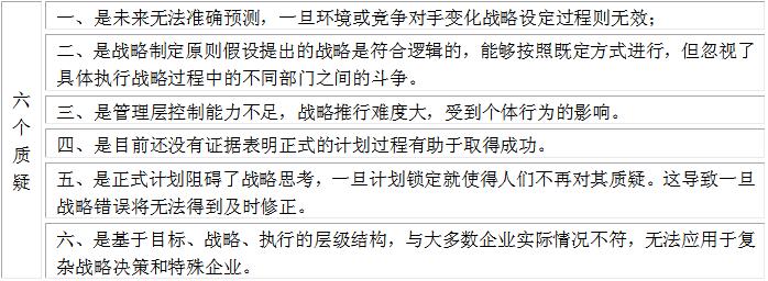 五是正式计划阻碍了战略思考,一旦计划锁定就使得人们不再对其质疑。这导致一旦战略错误将无法得到及时修正。
