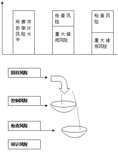 这个模型也就是审计风险模型。假设针对某一认定,注册会计师将可接受的审计风险水平设定为5%,注册会计师实施风险评估程序后将重大错报风险评估为25%,则根据这一模型,可接受的检查风险为20%。当然,实务中,注册会计师不一定用绝对数量表达这些风险水平,而选用“高”、“中”、“低”等文字描述。