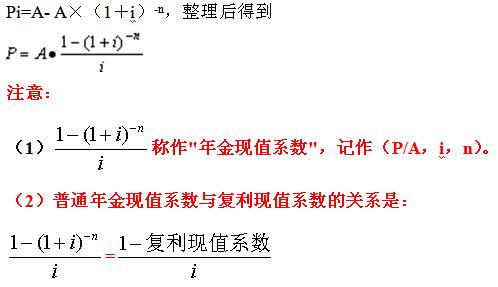 P=A×(1+i)-1+A×(1+i)-2+A×(1+i)-3+A×(1+i)-4+……+A×(1+i)-n(1)