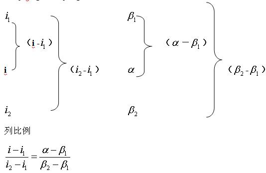 2、内插法:实际上是列比例的方法。主要用来估计利率和期限。