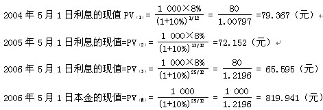 2004年5月1日价值=80×1.7355+80+1000×0.8264=1045.24(元)