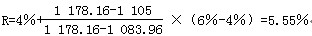 折现结果高于1105,可以判断,收益率高于4%。用插补法计算近似值: