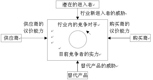 迈克尔?波特提出了最具影响力战略分析模型――五力模型,用以确定企业在行业中的竞争优势和行业可能达到的最终资本回报率,如图2-3所示。按照迈克尔?波特的理论,产业中存在五种基本的竞争力量:(1)潜在的进入者;(2)供应商的议价能力;(3)购买者的议价能力;(4)替代品;(5)现有竞争者之间的竞争强度。这五种竞争驱动力决定了企业的最终盈利能力。