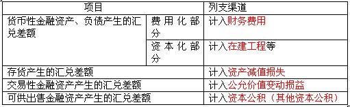 现将上述资产、负债的汇兑差额的列支渠道归纳如下: