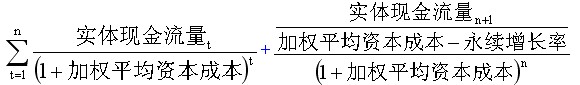 实体价值=预测期实体现金流量现值+后续期价值的现值