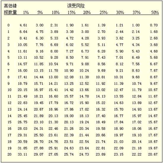 PPS抽样风险系数表(适用于高估)