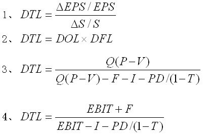总杠杆系数总杠杆作用的大小用总杠杆系数来计量,它是指普通股每股收益变动率与产销业务量变动率的比值。其公式为:
