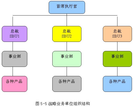 企业的成长最终需要将相关产品线归类为事业部,而然后将这些事业部归类为战略业务单位。战略业务单位组织结构尤其适用于规模较大的多元化经营的企业。